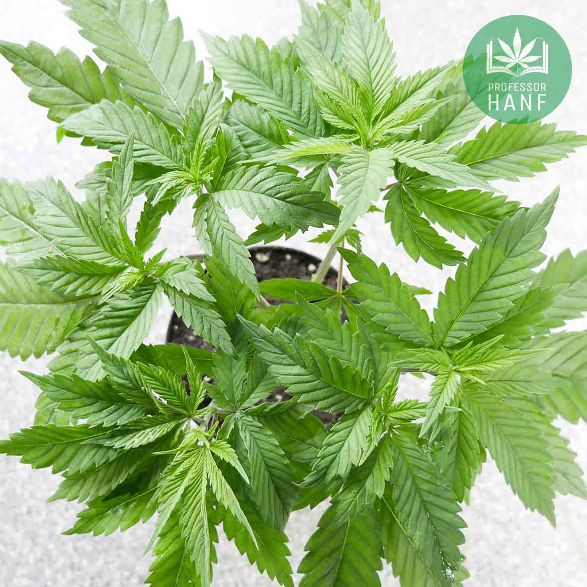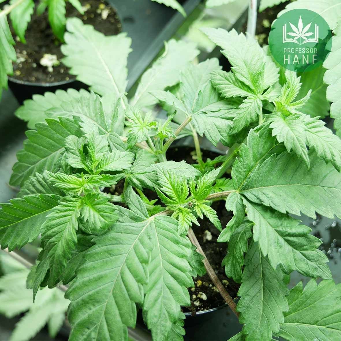 Unsere photoperiodischen Pflanzen werden gezielt beschnitten. Das Ergebnis ist eine kompakte, buschige Pflanze mit mehreren kräftigen Seitentrieben statt nur eines langen Haupttriebs.